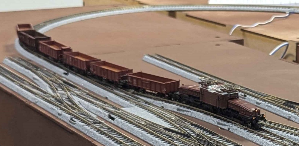 un little hang-out with Kyle S today at the club – he invited me in for a test-running/conceptional-thinking of his new Sarntalbahn line, a layout constructed largely of T-Trak (and kinda T-Trak) modules.