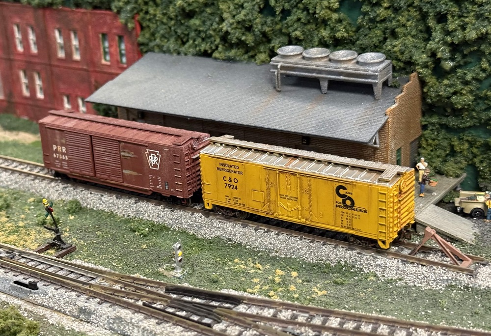 I’ve even sceniced the staging area between Westly and Easton with a tiny dept. Yes, the station names are correct on either side of the building. (Jim M)