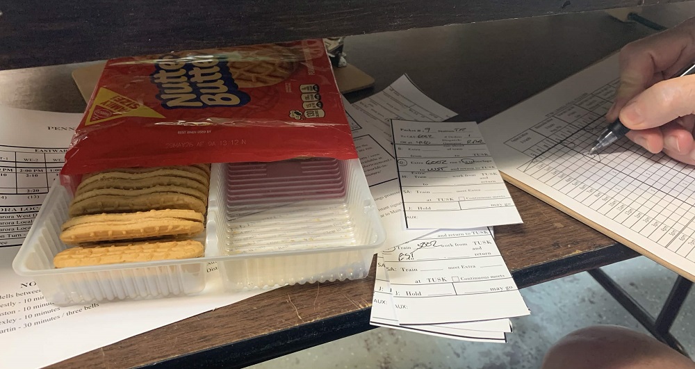 Tools of the coal-hauler trade. The timetable, the tally sheet, issued packets of train orders, and most of the Nutter Butters – so that’s where they went. (Luke L)
