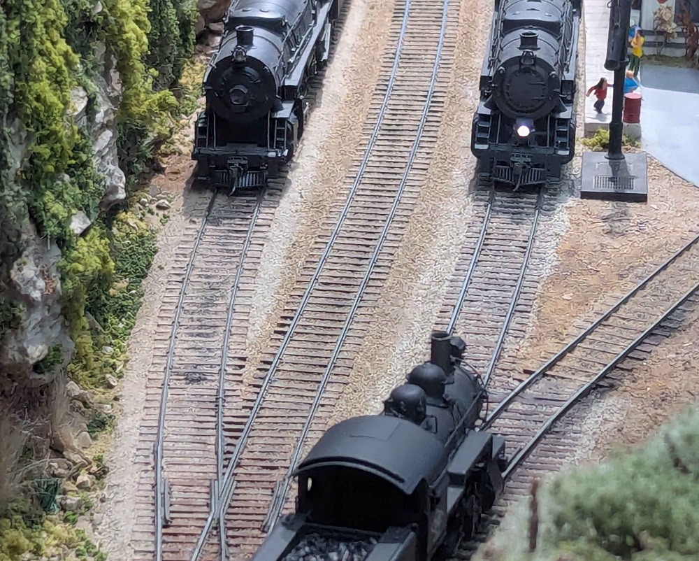 Now it gets worse. With 250 directing me to just get out of the yard, I advanced the throttle, only to have the rear two hoppers (and the caboose) uncouple. So there was more fussing and more snickering from the sharper-than-serpent’s-teeth crowd over in Ashbury. I figured the best I could do at that point was get the train together and get out of town. Coupled and went.