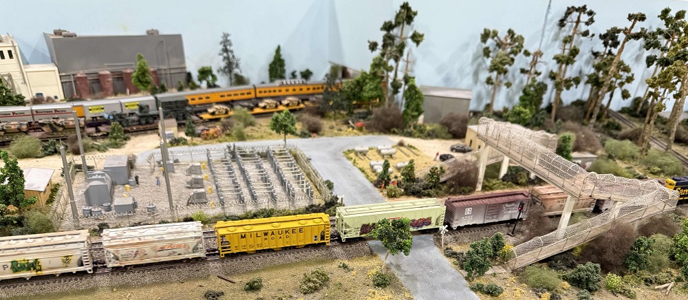 The T-Trak boys were up as well, with Rev Jim’s module (to me) one of the finest modeled sectionals in the mix. I really didn’t get a chance to watch the trains pace around the layout (hey, ours is still more interestingly sceniced – that’s just the truth. Our gentle bends and scenery tricks, and our vast forests and high builds, always delight the crowd (it’s why the show organizers pay us)). But they did attract people and, more importantly, provide people with the idea that they can build their own small little piece and bring it to shows and find themselves gatewayed into this great hobby of ours.